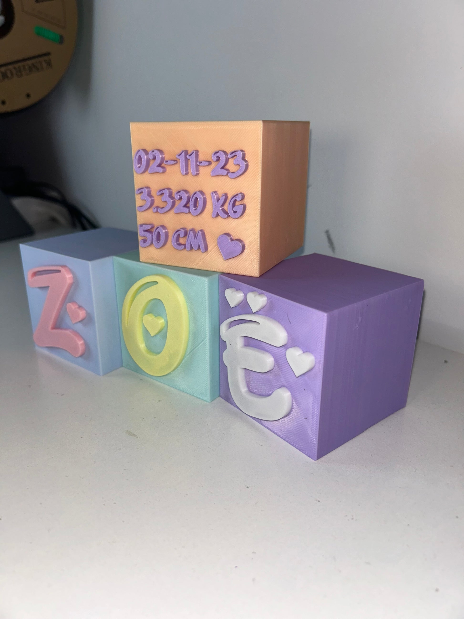 Conmemora el día más especial con nuestro exclusivo set de Bloques de Nacimiento Personalizados. Estos cubos decorativos son el regalo ideal para un babyshower, bautizo o cumpleaños, y sirven como una pieza de decoración atemporal para la habitación del bebé.