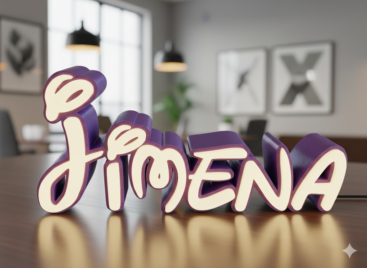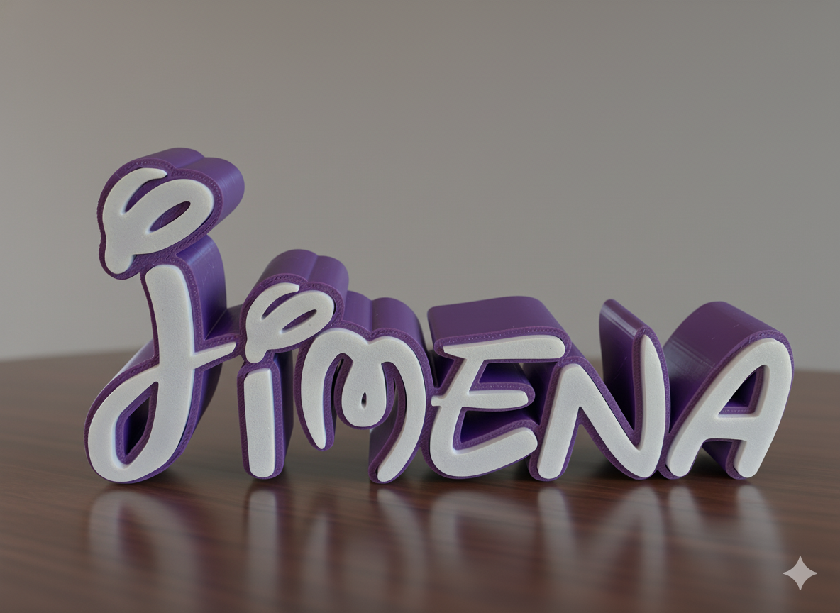 Esta lámpara ha sido diseñada y fabricada por nosotros mediante impresión 3D, cuidando cada detalle para ofrecerte una pieza única y especial. Su estilo cursivo y colores vibrantes la convierten en el regalo perfecto o en un elemento decorativo que aporta personalidad a cualquier espacio.