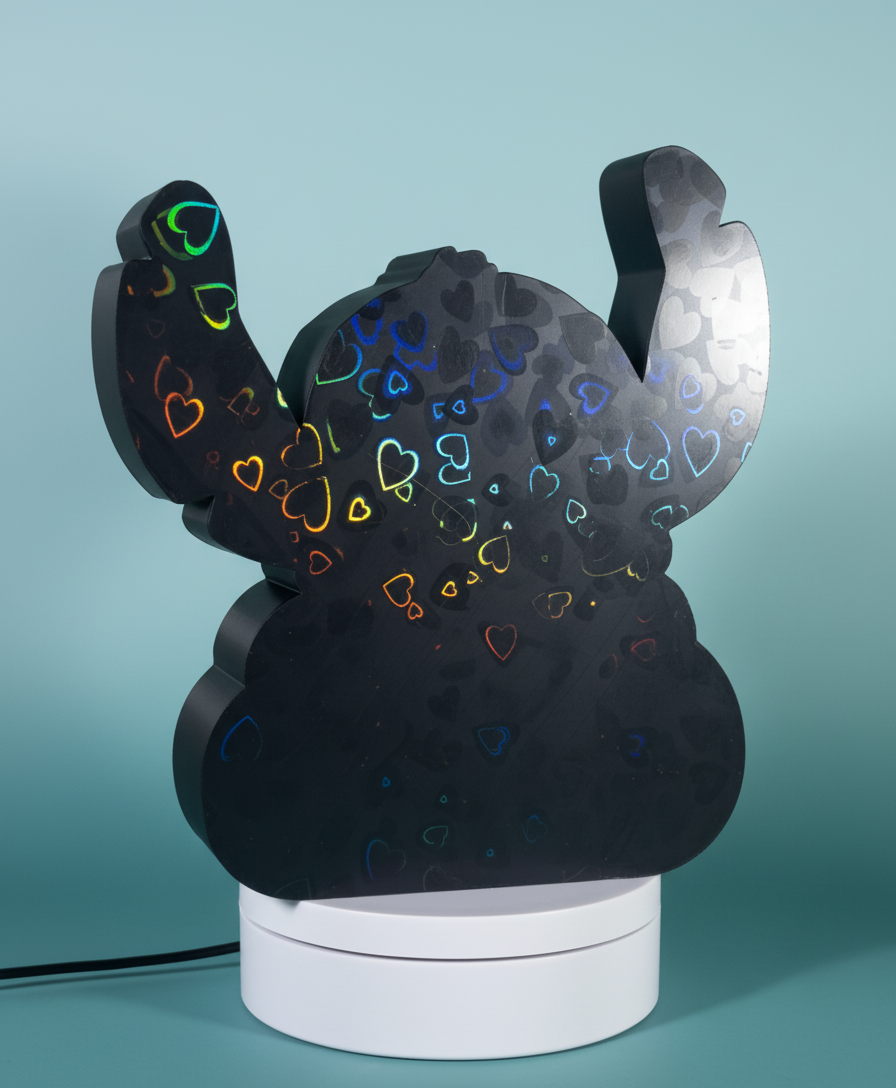 Cada lámpara de Stitch cobra vida en nuestro taller a través de la impresión 3D. Este cuidadoso proceso nos permite recrear a tu personaje favorito con un nivel de detalle increíble. Al ser un producto fabricado bajo pedido, puede presentar pequeñas marcas que, lejos de ser defectos, son la prueba de su origen artesanal y tecnológico. ¡Es la señal de que tu lámpara es única en el universo!