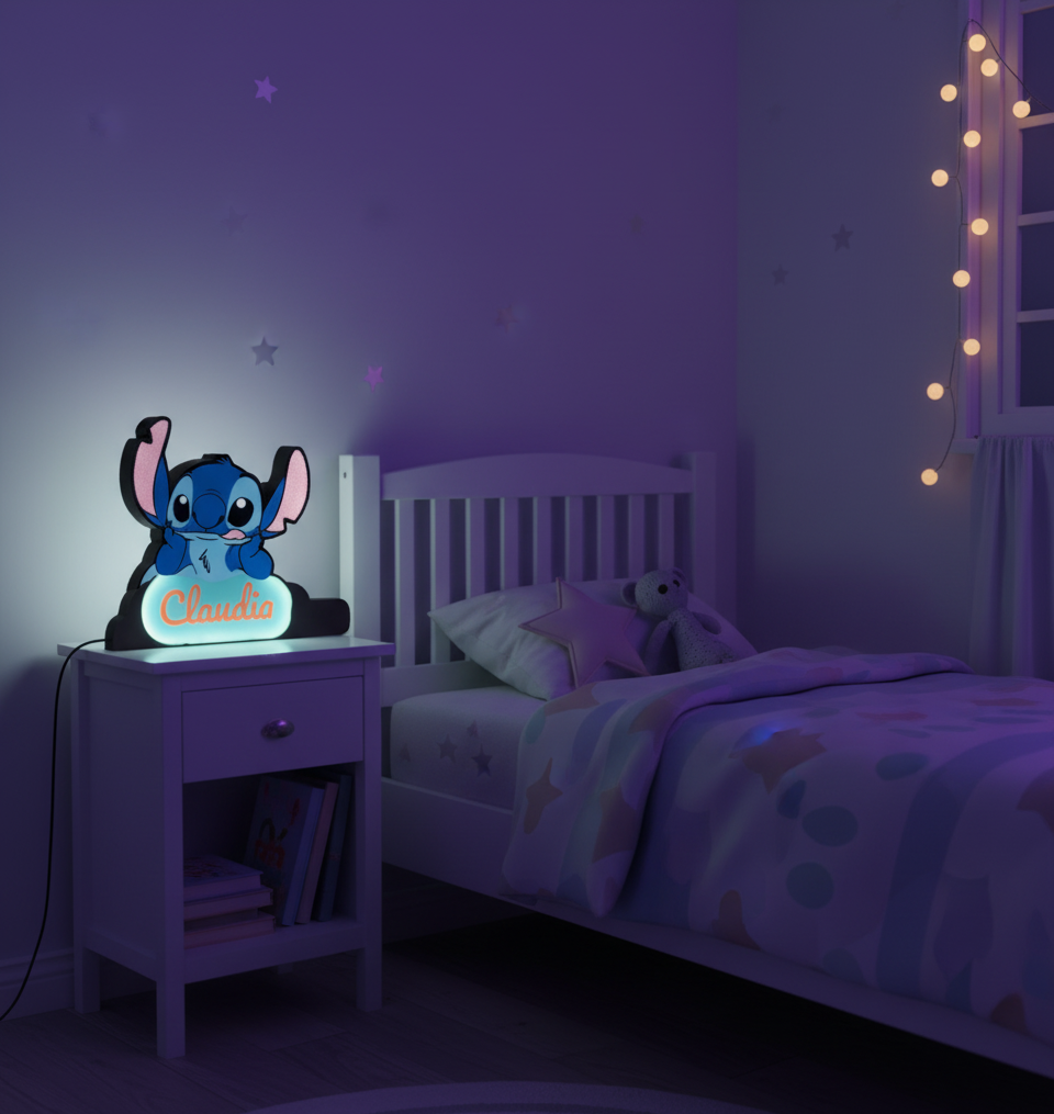 ¿Hay algo más adorable que el extraterrestre azul más querido de la galaxia? ¡Sí! Tenerlo en tu propia habitación iluminando tus sueños. Te presentamos nuestra lámpara personalizada de Stitch, una pieza única creada con tecnología 3D que traerá diversión y ternura a cualquier rincón.
